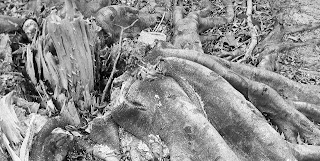 Seu corpo de muito se assemelhava ao da grande árvore. Seu rosto marcado pelo tempo e os vincos largos que corriam o tronco. Os pés ásperos e cheio de fisuras e a raiz que docilmente invade a terra. As duas largas e fortes aparentavam agüentar o peso do mundo. Seus corpos cheios de espinhos para afasta os inimigos, mas com a seiva doce para nutrir seus filhos.